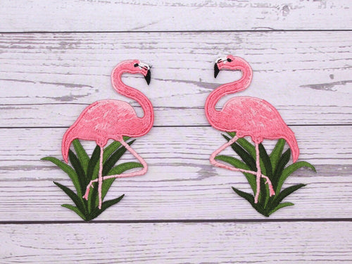 2 Beautiful Small Pink Florida Flamingo's Applique Patch