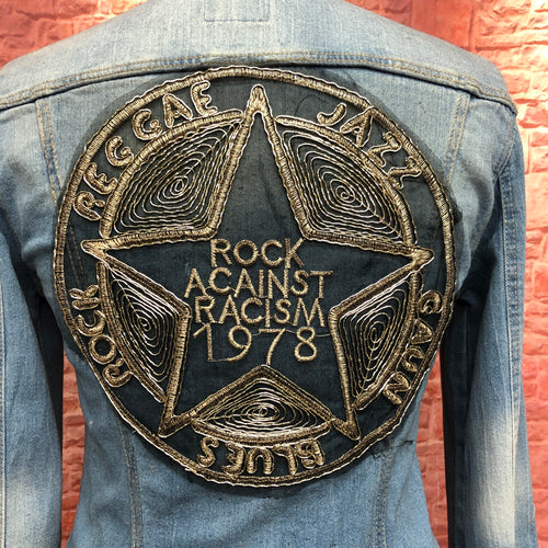 Large Rock Against Racism Gold Thread On a Black Lace Backing Applique Patch
