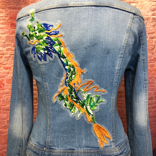 Large Colourful Embroidered Chinese Dragon Appliqué Patch
