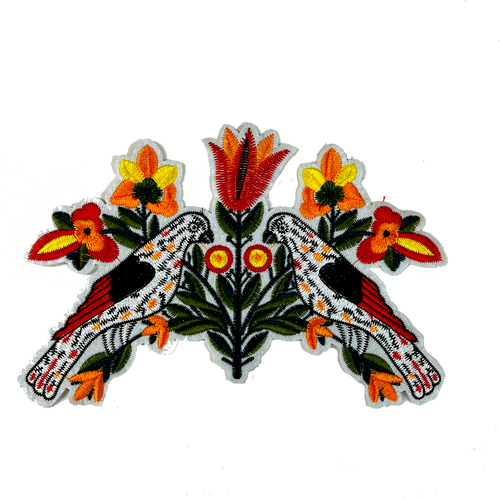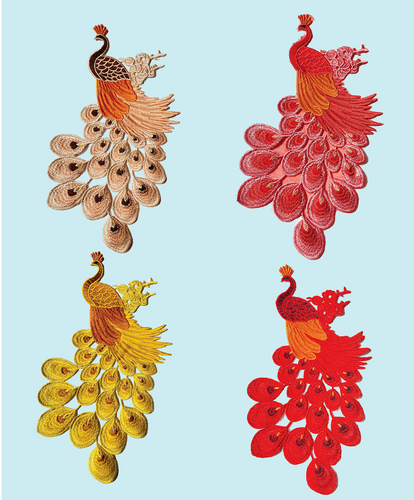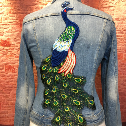 Large Bright Embroidered and Lace Peacock Applique Patch