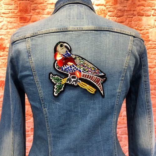 Large Colourful Rhinestone Bird Parrot Appliqué Patch