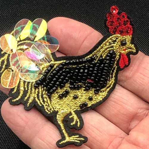Crystal Glitter Beaded Tear Eye Rooster Applique Patch