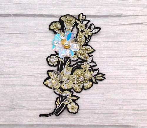 Beautiful Large Sequin White Rose Flower Patch appliqué
