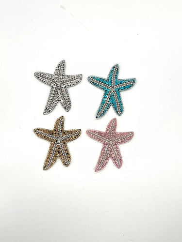 Delicate Starfish Embroidery Rhinestone Beaded Applique Patch