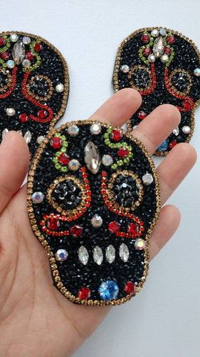 Rhinestone Embroidered Skull & Crossbones Applique Patch