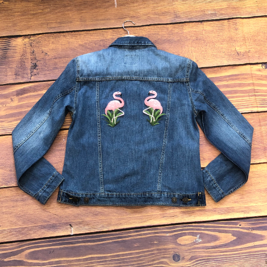 2 Beautiful Small Pink Florida Flamingo's Applique Patch