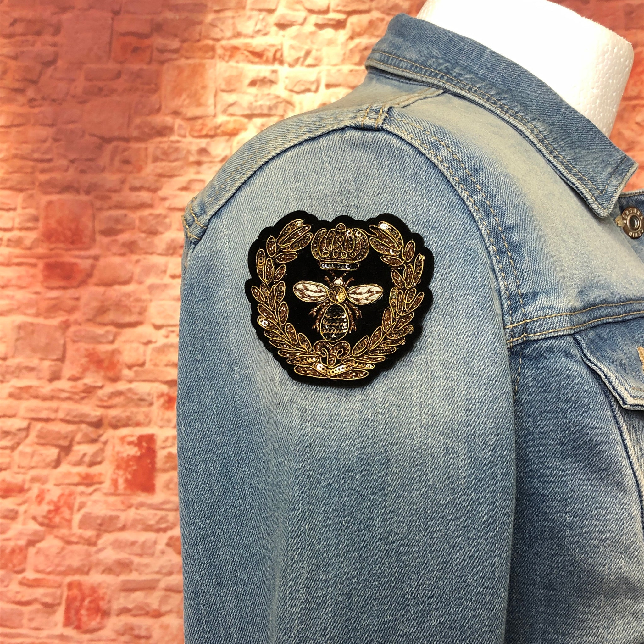 2 Handmade 3D Gold Bee & Crown Patch Applique